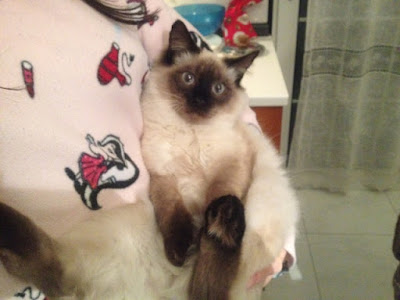 Oggi va già meglio, ha giocato come una pazza stamattina e ora sta dormendo come un ghiro da tre orette circa. E' normale anche per un Ragdoll avere dei momenti di pazzia quando sono piccoli? Perchè mi sto un pò preoccupando per quando arriverà l'altra, Maya. Non vorrei che mio padre perdesse la pazienza.